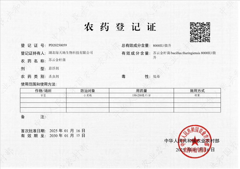 8000單位蘇云金懸浮劑農(nóng)藥登記...